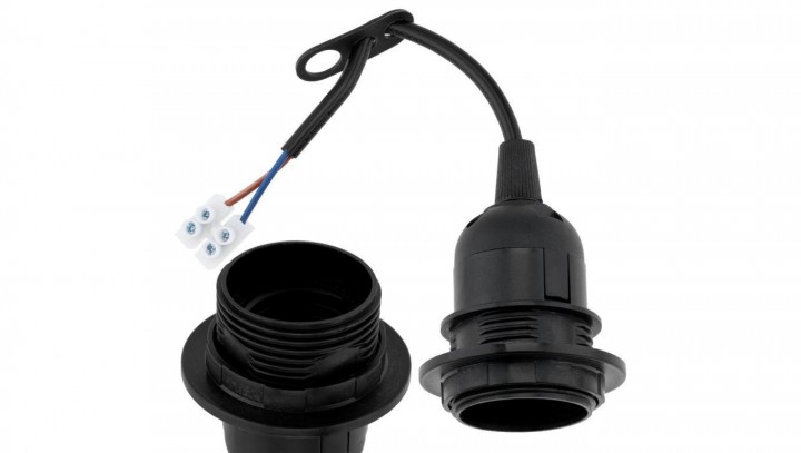 Oprawka Remontowa Budowlana na Żarówke E27 Prowizorka z Przewodem i Kostką Zaciskową czarna