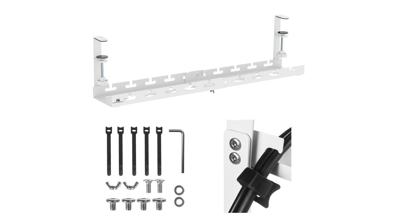 Organizer podbiurkowy na kable Maclean, max. obciążenie 5kg, max. 728mm, biały, MC-103 W