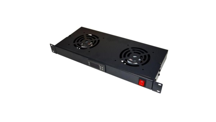 Panel wentylacyjny x2 z termostatem 19iquot/br 1U RAL9004