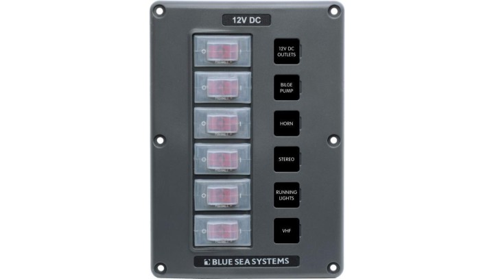 Panel Wyłączników Blue Sea – 6 obwodów, wodoodporny, szary