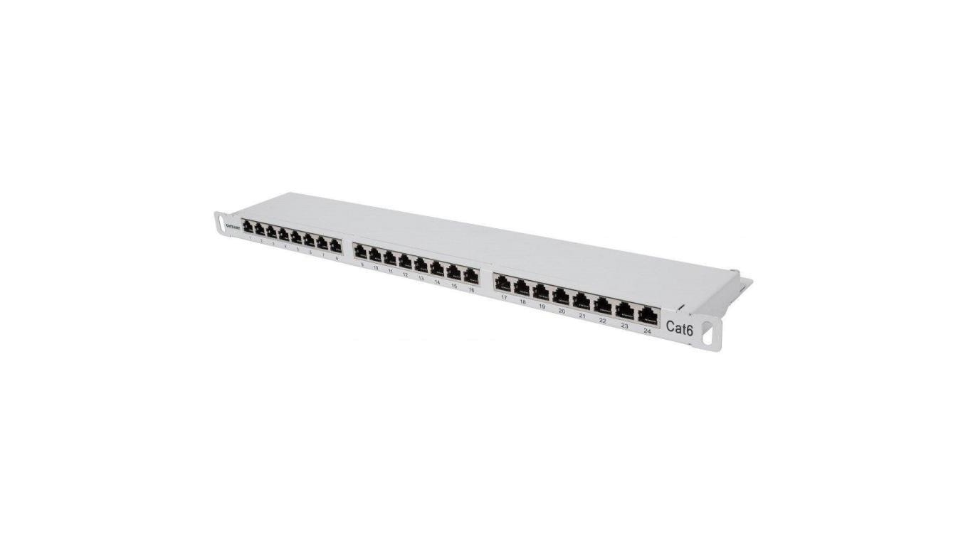 Patch Panel Rack 19 0.5U, 24 porty RJ45 Cat6 FTP, szary