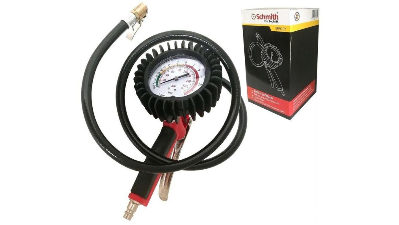 Pistolet do pompowania kół manometr 1m Schmith