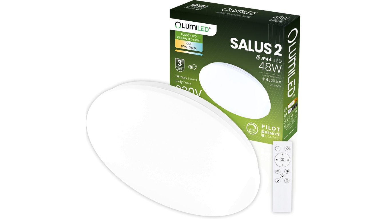 Plafon LED Lampa Sufitowa Natynkowa SALUS2 48W IP44 CCT Biały Okrągły 40cm + PILOT LUMILED