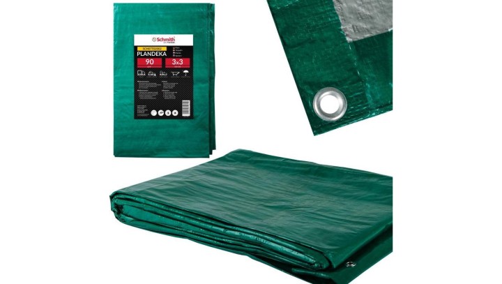 Plandeka 3x3 90g zielona gruba wzmacniana z oczkami płachta Schmith