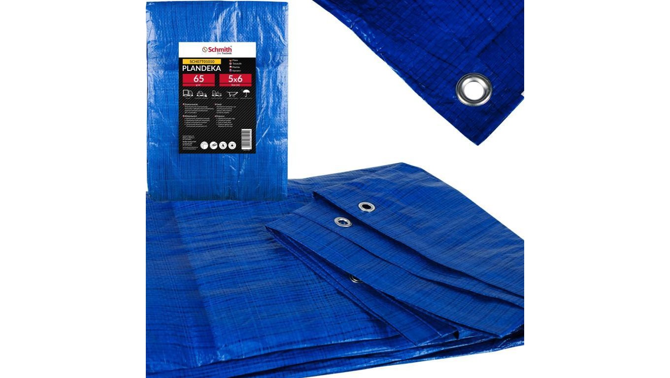 Plandeka 5x6 niebieska wzmacniana z oczkami płachta Schmith