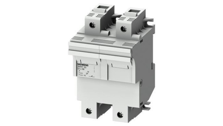 Podstawa bezpiecznikowa do wkładek cylindrycznych 22x58mm 100A 2-bieg. Na szynę DIN 3NW7221