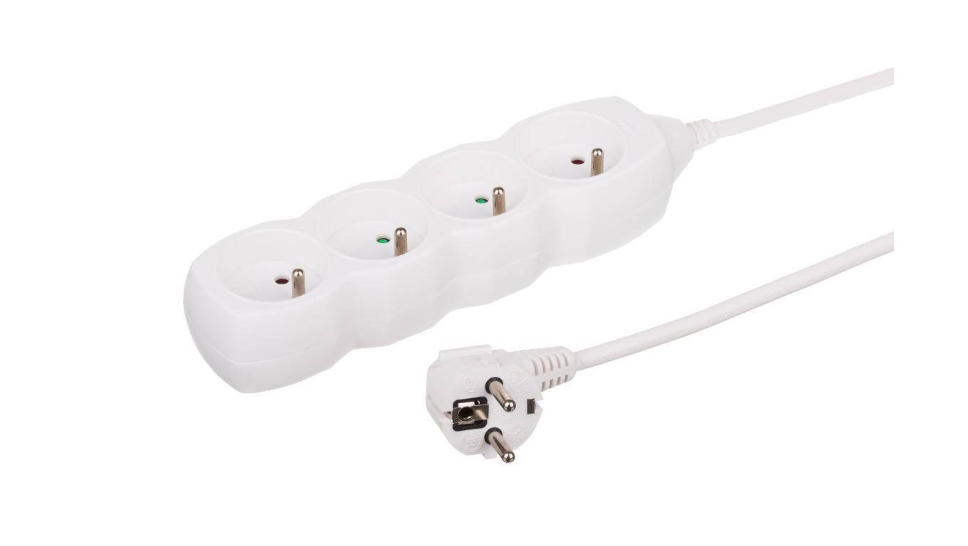 Przedłużacz 4-gniazdowy, 3m biały, 3x1,0mm OWY / 34430