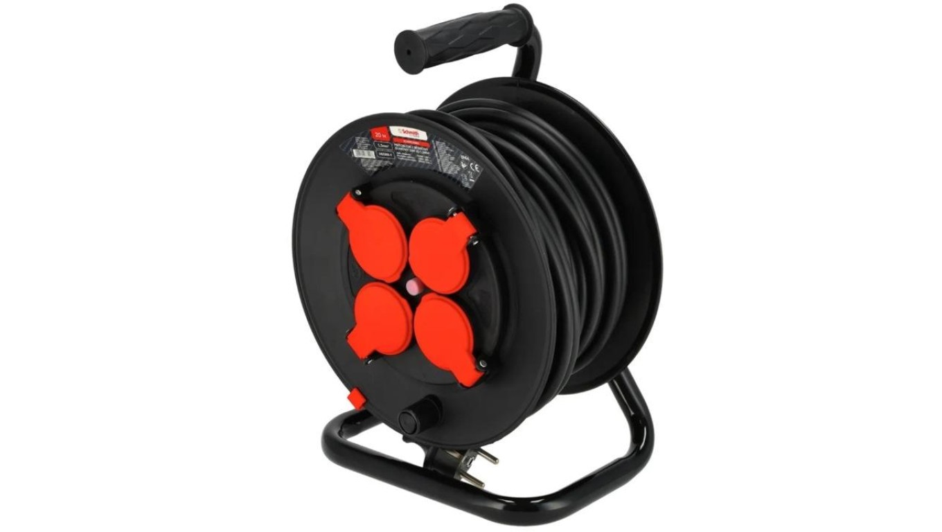 Przedłużacz bębnowy 30m na bębnie 4 gniazda 3x1,5 gumowy IP44 PRO SCHMITH