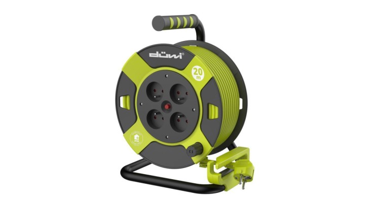 Przedłużacz bębnowy 4-gniazdowy H05VV-F 3G1.0, 20m lemonkowo-czarny / 24621