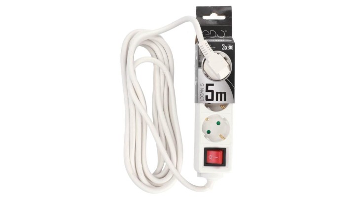 Przedłużacz domowy przenośny LOGAN S White 3 - krotny Schuko 5m z włącznikiem EDO777576 EDO