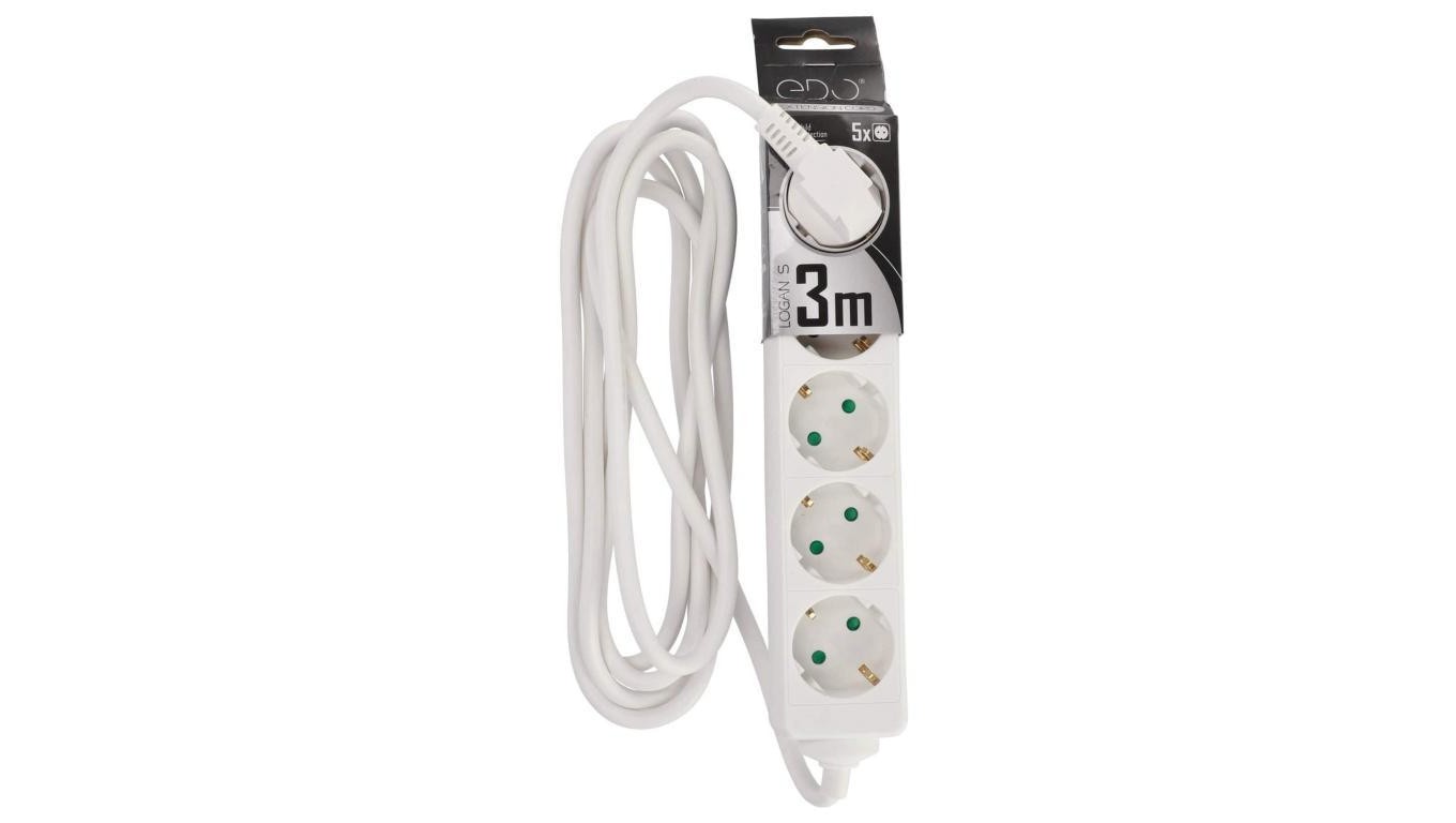 Przedłużacz domowy przenośny LOGAN S White 5 - krotny Schuko 3m EDO777572 EDO