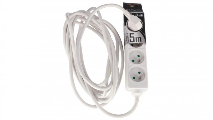 Przedłużacz domowy przenośny LOGAN White 4 - krotny z uziemieniem 5m EDO777556 EDO