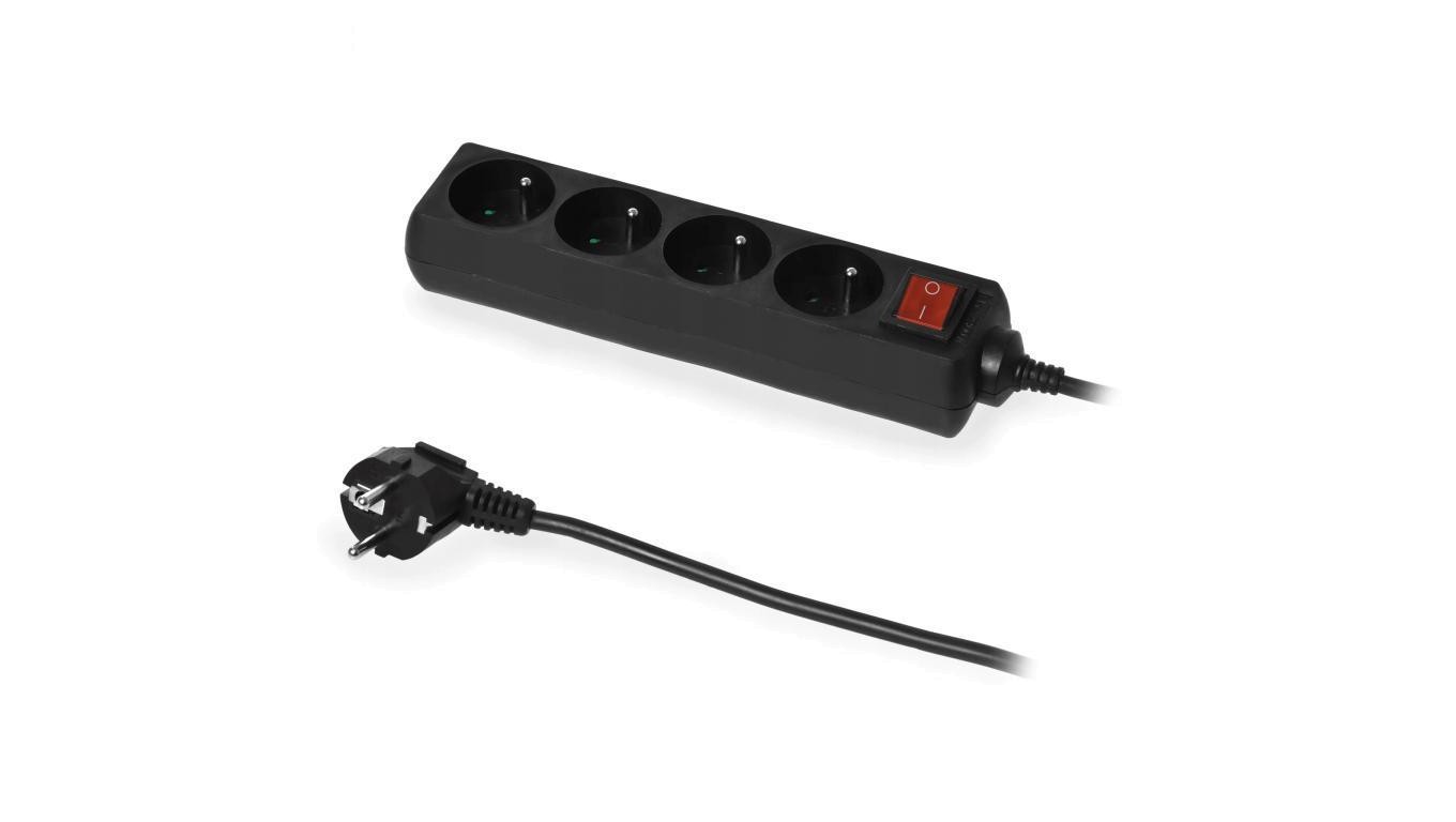 Przedłużacz elektryczny Listwa zasilająca na 4 gniazda 2P+Z z wyłącznikiem czarna 5m ECO PLASTROL