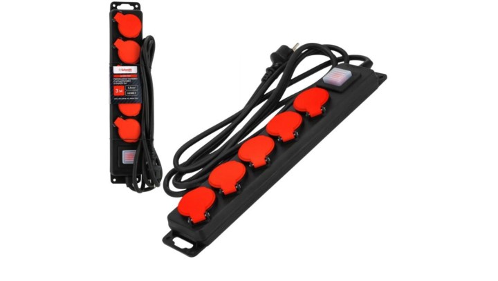 Przedłużacz gumowy listwa zasilająca z wyłącznikiem 3m 5 gniazd Schmith