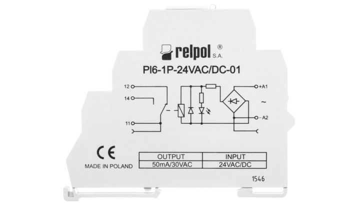 Przekaźnik interfejsowy 1P 12A 24V AC/DC AgSnO2 PI6-1P-24VAC/DC-01 858555