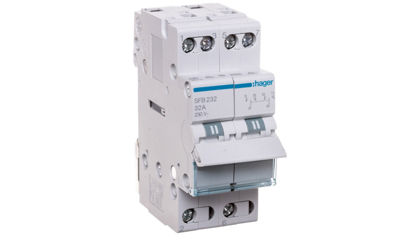 Przełącznik modułowy z pozycja centralną OFF 1-0-2 32A 2P 230V SFB232