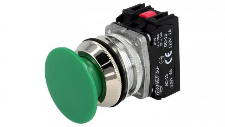 Przełącznik przyciskany, Ilość pozycji stabilnych: 1, NC + NO, zielony, 30mm, IP55 NEF30-DZXY