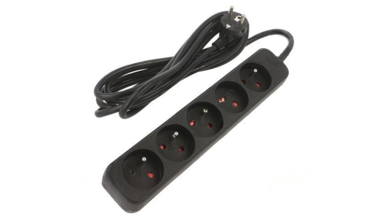 PS0-05E-0300-BK Przedłużacz sieciowy 3x1,5mm2 Gniazda: 5 guma czarny 3m 10A