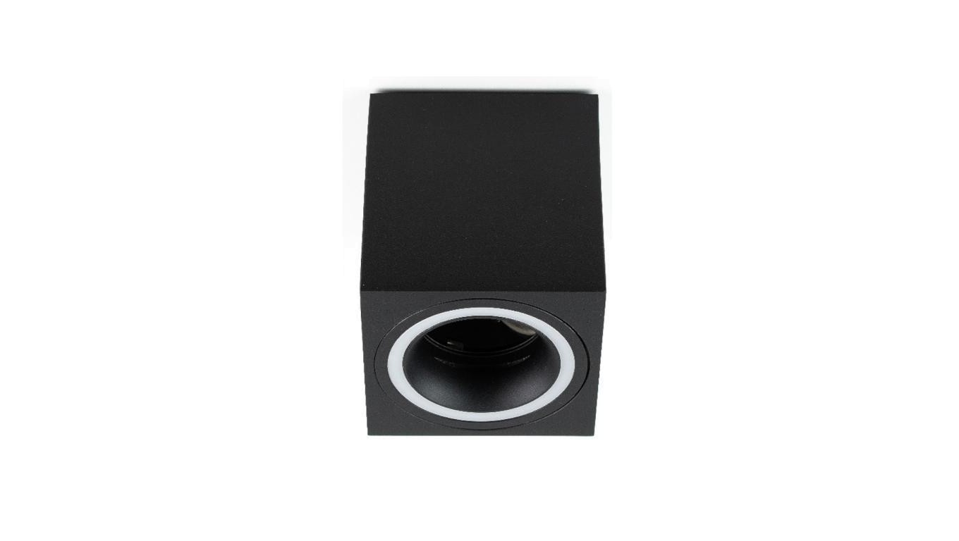Punktowa oprawa sufitowa natynkowa HALIS SQ Black GU10 kwadratowa czarna, biały pierścień EDO777333