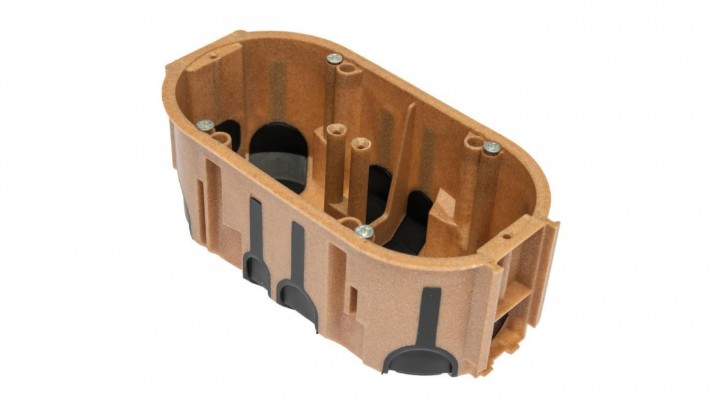 Puszka instalacyjna podtynkowa podwójna typu ProDuo ECO fi: 68x60 dwukomponentowa wiatroszczelna IP30 jasnobrązowa