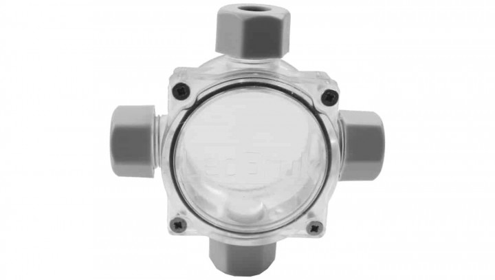 Puszka instalacyjna z 4 dławikami PG11 (4-9mm) natynkowa / gruntowa 90x90x37mm hermetyczna IP68 transparentna