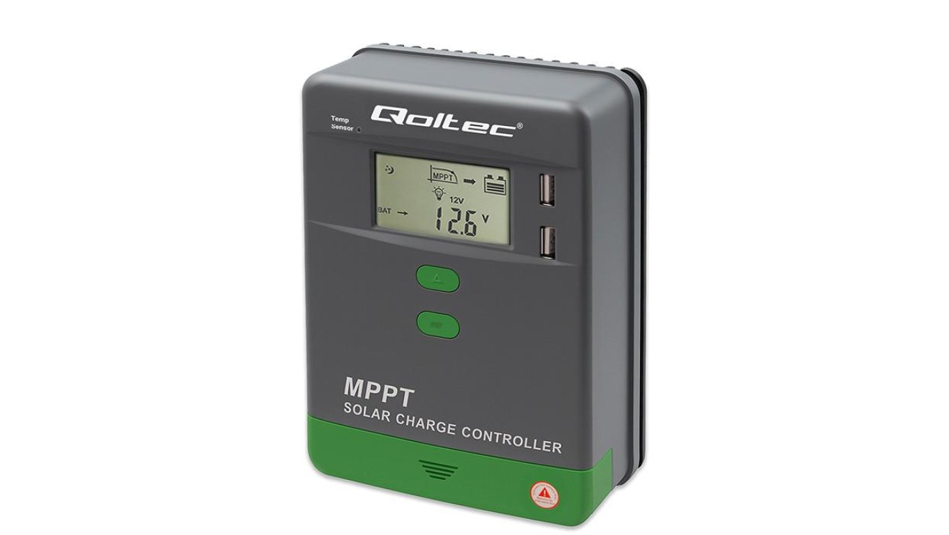 Qoltec Solarny regulator ładowania MPPT z czujnikiem temperatury 40A 12V / 24V LCD 2 x USB Bluetooth APP GEL LiFePO4