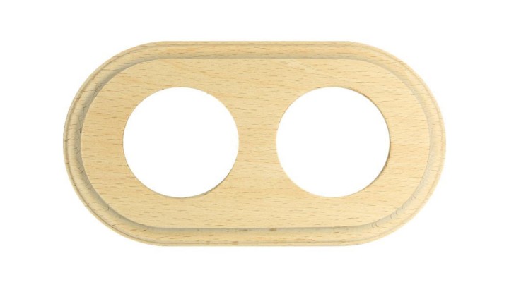 Ramka podwójna okrągła do łączników i gniazd Retro ceramic - jasne drewno