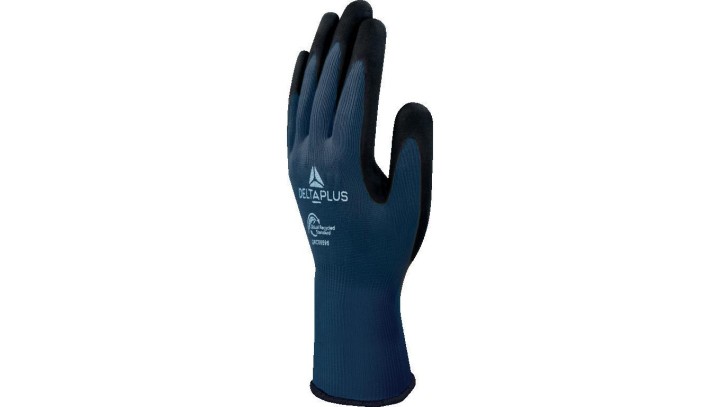 Rękawice dziane z poliestru z recyklingu dłoń powlekana pianką lateksową, ścieg 13, kolor Niebieski, rozmiar: 9, VV733GREEN09