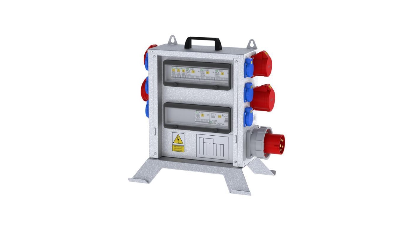 Rozdzielnica budowlana elTOWER-S W63-002206 IP44 wtyk CEE 63A gn: 6xGK 230V 16A 2xCEE 16A 2xCEE 32A 1xRCCB 6kA, 53406012