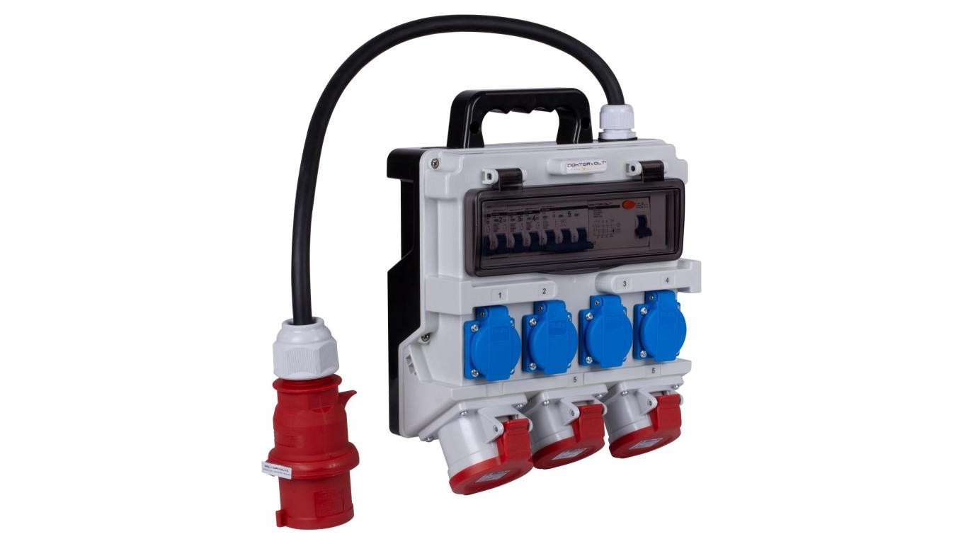 Rozdzielnica budowlana TR-S/FI hermetyczna IP44 Wyposażona + 3x gniazdo siłowe 5p (400V 32A + 2x16A) + 4x gniazdo 2P+Z (230V 16A