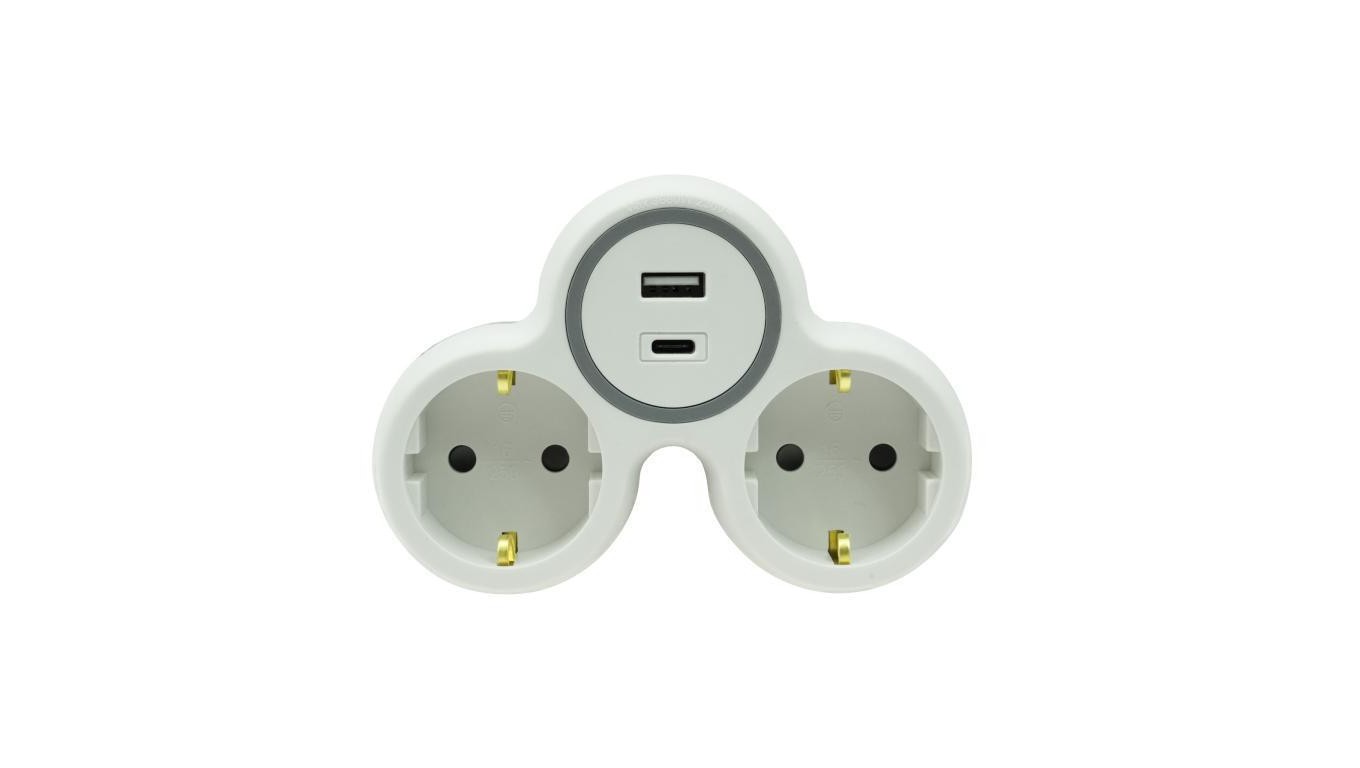 Rozgałęźnik dwukrotny 2x gniazdo wtyczkowe z/u schuko 1xUSB A 1xUSB C R-21WS/S/B W-72010