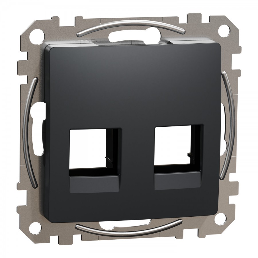 Sedna Design, Płytka centralna 2xRJ45 do wkładów 5e-6 UTP KELINE, AMP, MOLEX, czarny antracyt