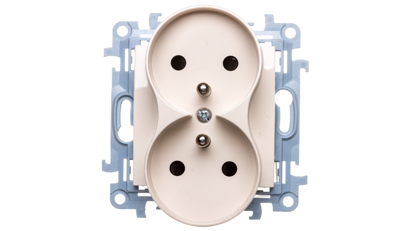Simon 10 Gniazdo podwójne z/u z przesłonami kremowe 16A 250V IP20 CGZ2MZ.01/41