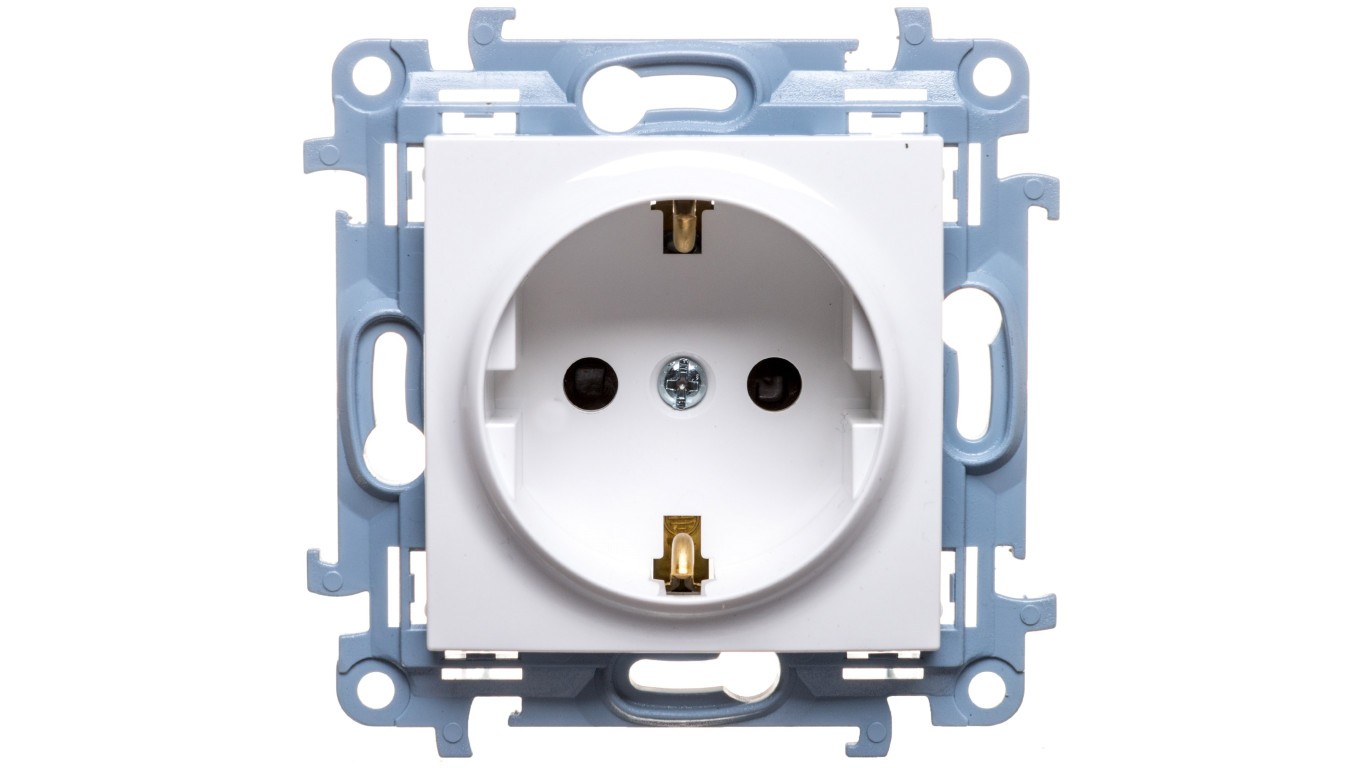 Simon 10 Gniazdo pojedyncze SCHUKO z przesłonami białe 16A 250V IP20 CGSZ1Z.01/11