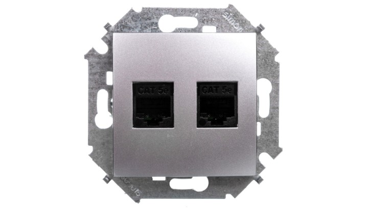 Simon 15 Gniazdo komputerowe podwójne RJ45 kat.5e aluminium metalizowane 1591552-026