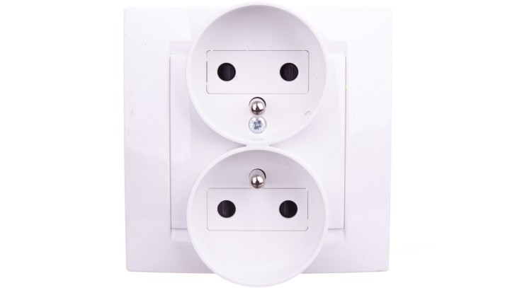 Simon 15 Gniazdo podwójne z/u 16A IP20 z przesłoną torów białe 1591451-030