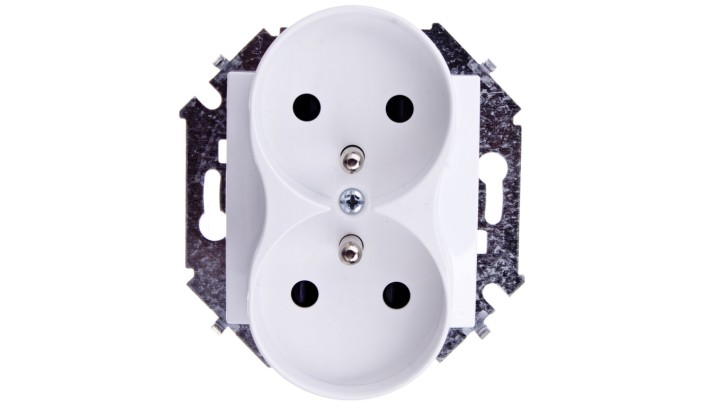 Simon 15 Gniazdo podwójne z/u 16A IP20 z przesłoną torów białe 1591461-030