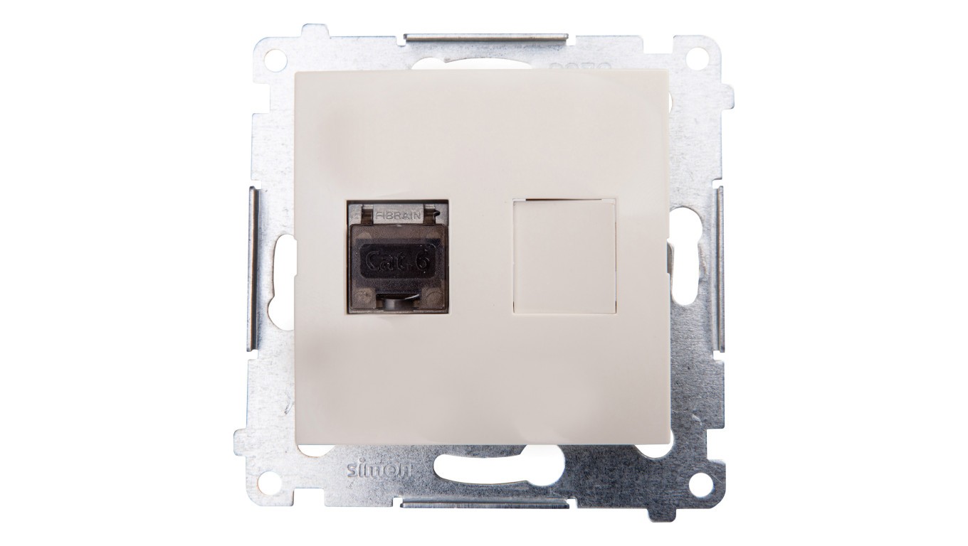 Simon 54 Gniazdo komputerowe pojedyncze RJ45 kat.6 ekranowane z przesłoną kremowe D61E.01/41
