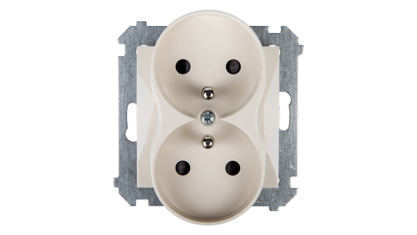 Simon 54 Gniazdo podwójne z/u 16A IP20 z przesłoną torów kremowe DGZ2MZ.01/41