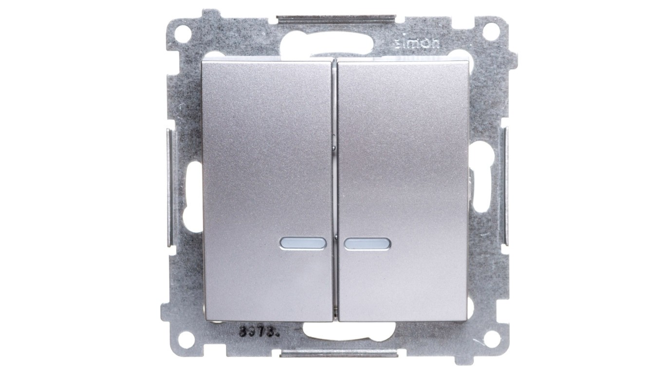 Simon 54 Łącznik bryzgoszczelny świecznikowy IP44 z podświetleniem srebrny mat DW5BL.01/43