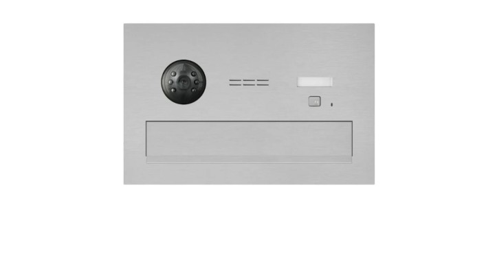 Skrzynka na listy przelotowa w rozmiarze C4 z wbudowanym wideodomofonem COMO-PRO-V G3, z 1 przyciskiem, czytnikiem zbliżeniowym