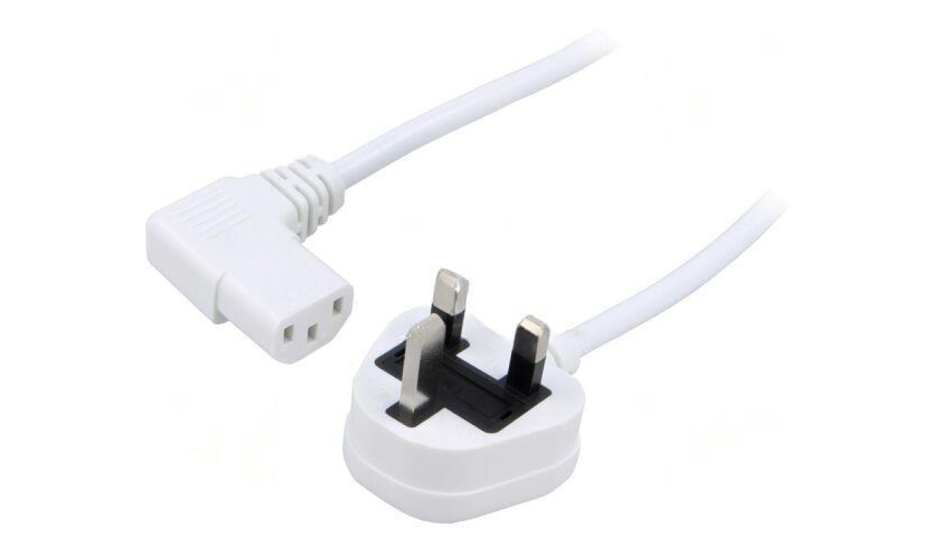 SN24-3/07/1.5WH Kabel: 3x0,75mm2, BS 1363 (G) wtyk,IEC C13 żeński kątowy prawy