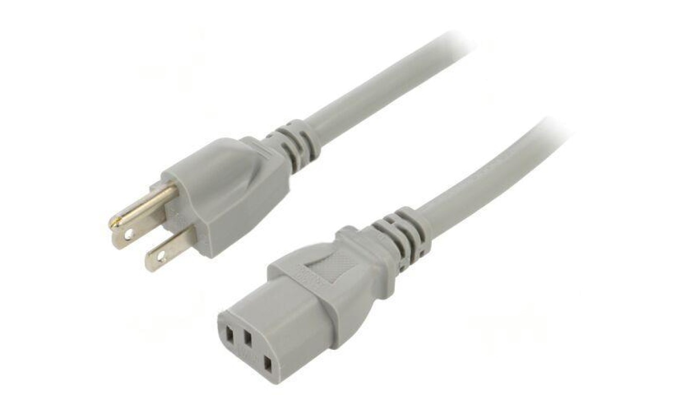SN45-3/14/1GY Kabel: 3x14AWG, IEC C13 żeński,NEMA 5-15 (B) wtyk, 1m
