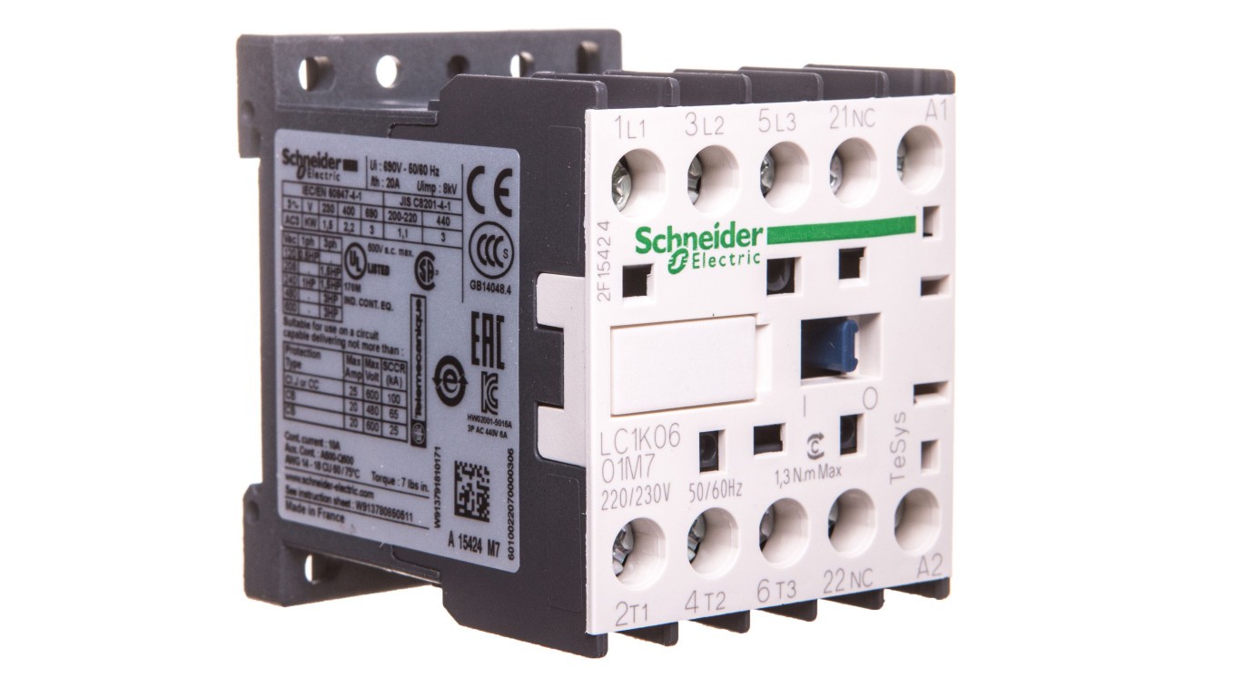 Stycznik mocy miniaturowy I=6A AC-3, styk pom. 1NC, nap. cewki 220-230 V AC LC1K0601M7