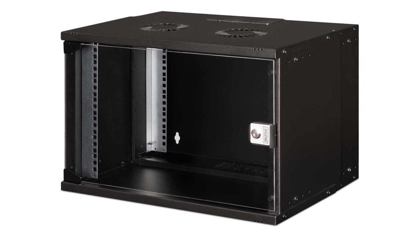 Szafa sieciowa wisząca 19 7U, SOHO PRO 370 x 540 x 400 mm, drzwi szyba, czarny, niezłożona, 60kg DN-49203