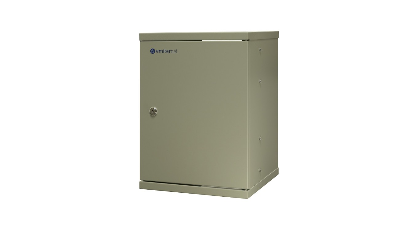 Szafa wisząca niedzielona 10 9U, drzwi blacha, 325×330x445 (szer./gł./wys. mm) RAL: szafa 7044, w komplecie półka i komplet 6
