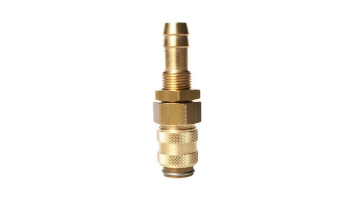Szybkozłącze pneumatyczne DN5 typ 21, grodziowe do węża fi 6 mm, gniazdo szybkozłącza, mosiądz