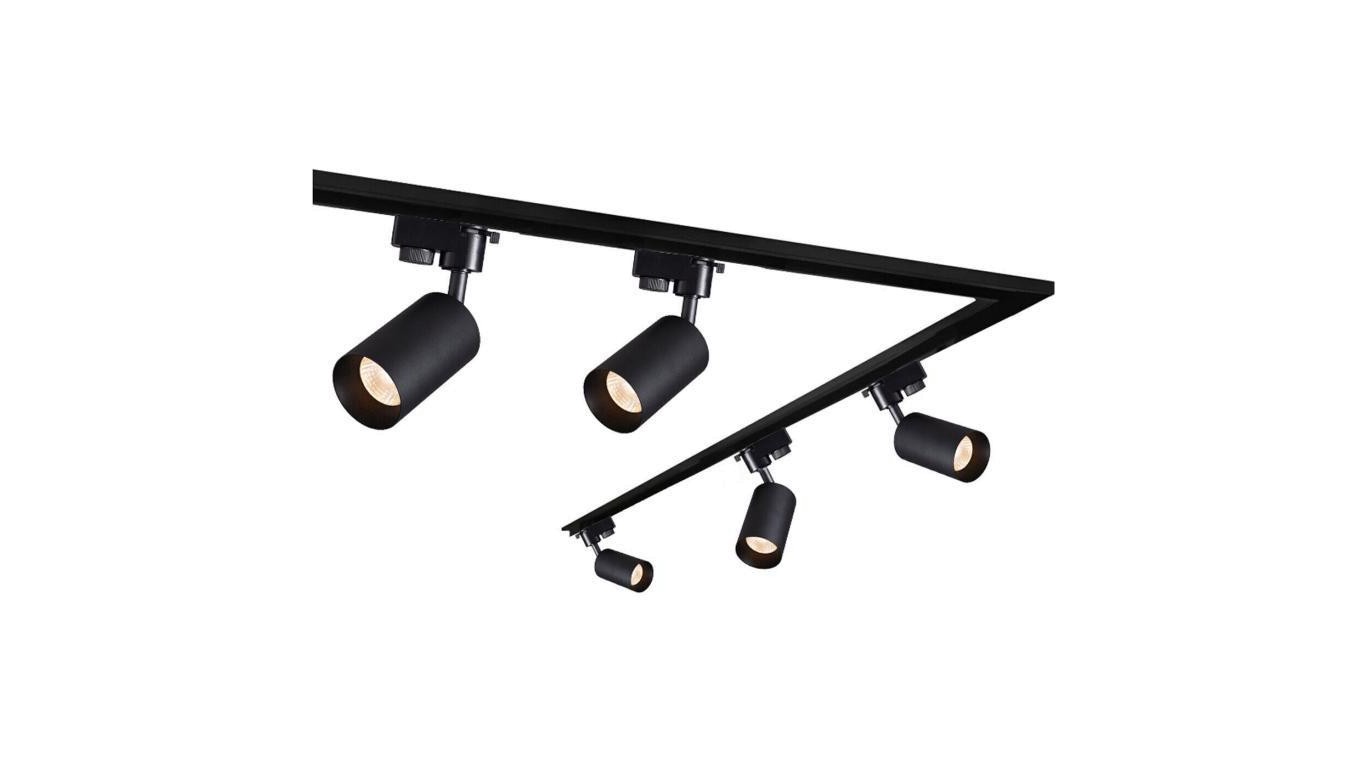 Szynoprzewód z reflektorami, czarny (1,90 + 0,90m szyny + 5szt.reflektorów+ końcówka+zaślepka+kątownik ) system szynowy EDO