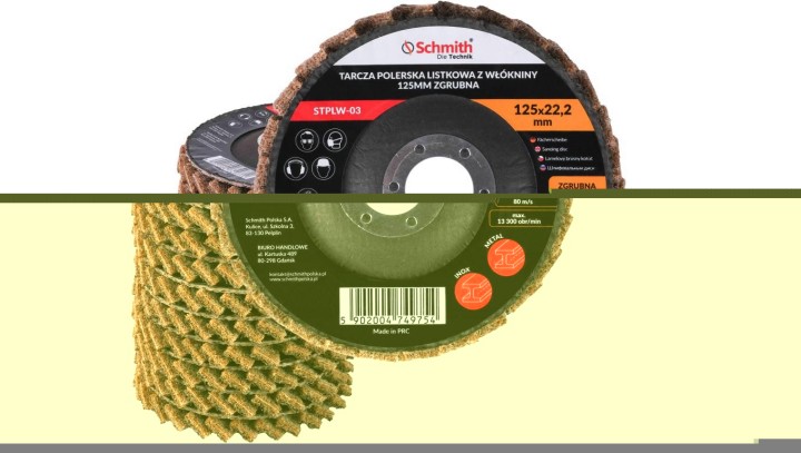 Tarcza polerska listkowa zgrubna 125mm filc lamelka z włókniny Schmith