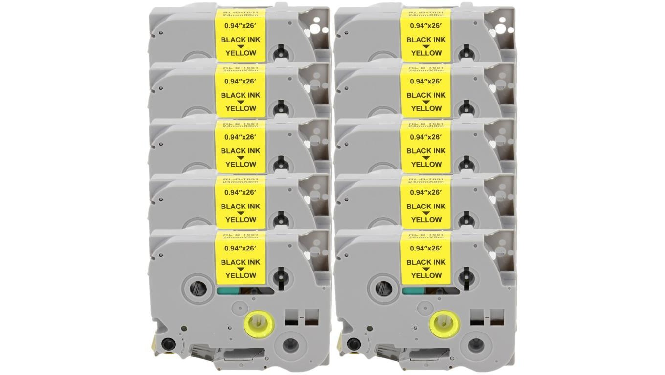 Taśma 10x Tze-651 do drukarki Brother 24mm x 8m żółta taśma czarny nadruk
